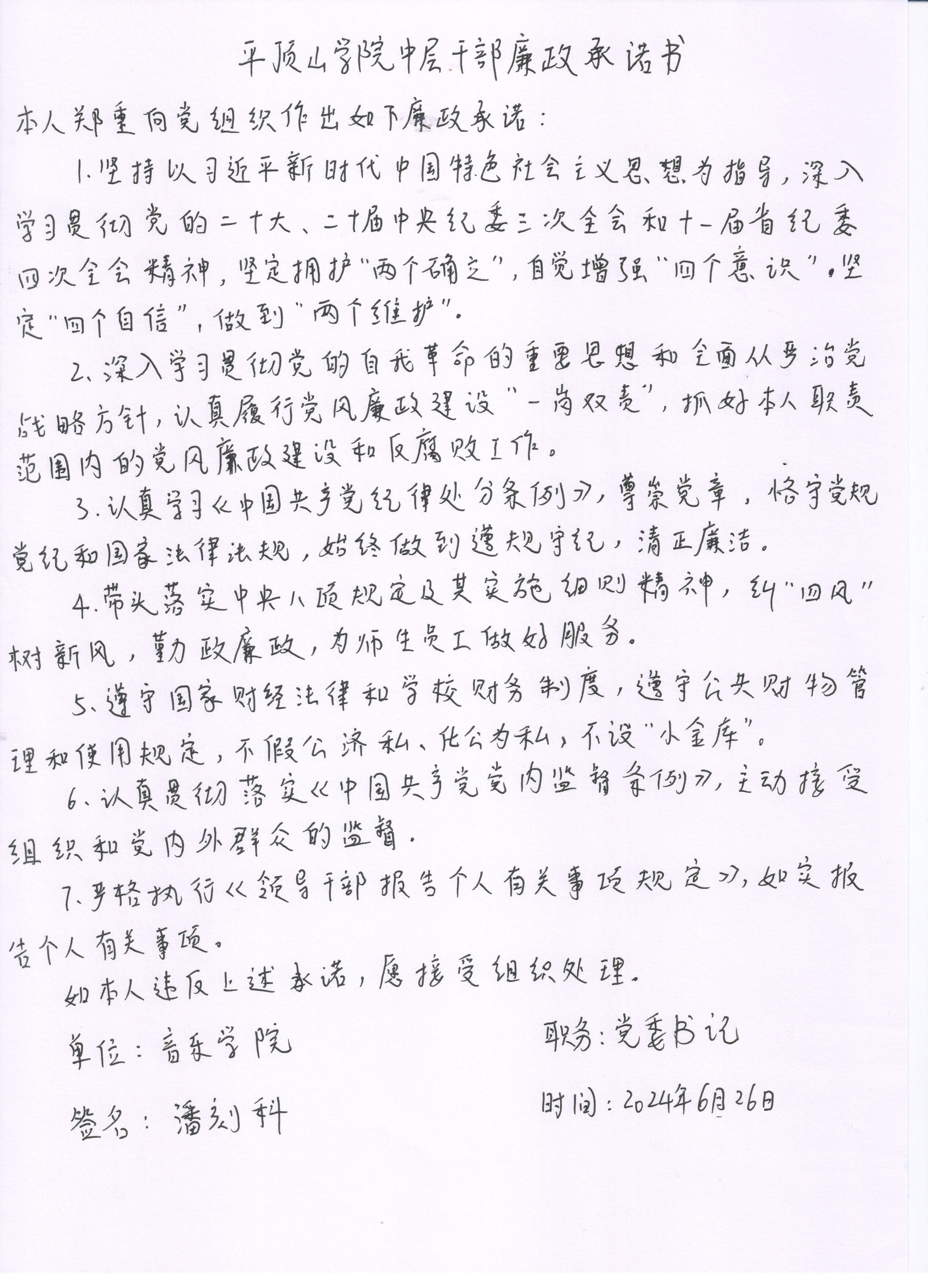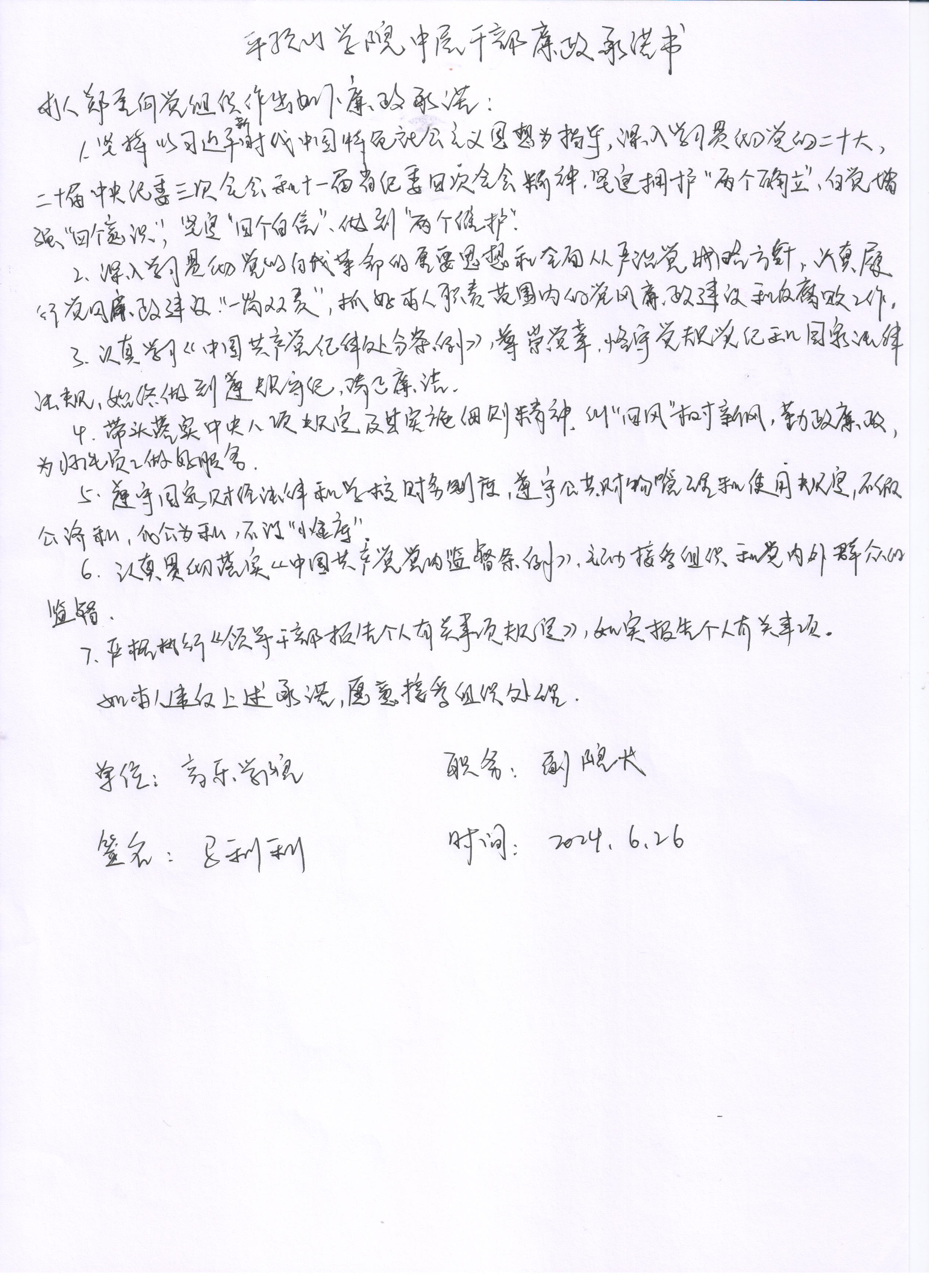 太阳成集团tyc122cc副经理马利利廉政承诺书