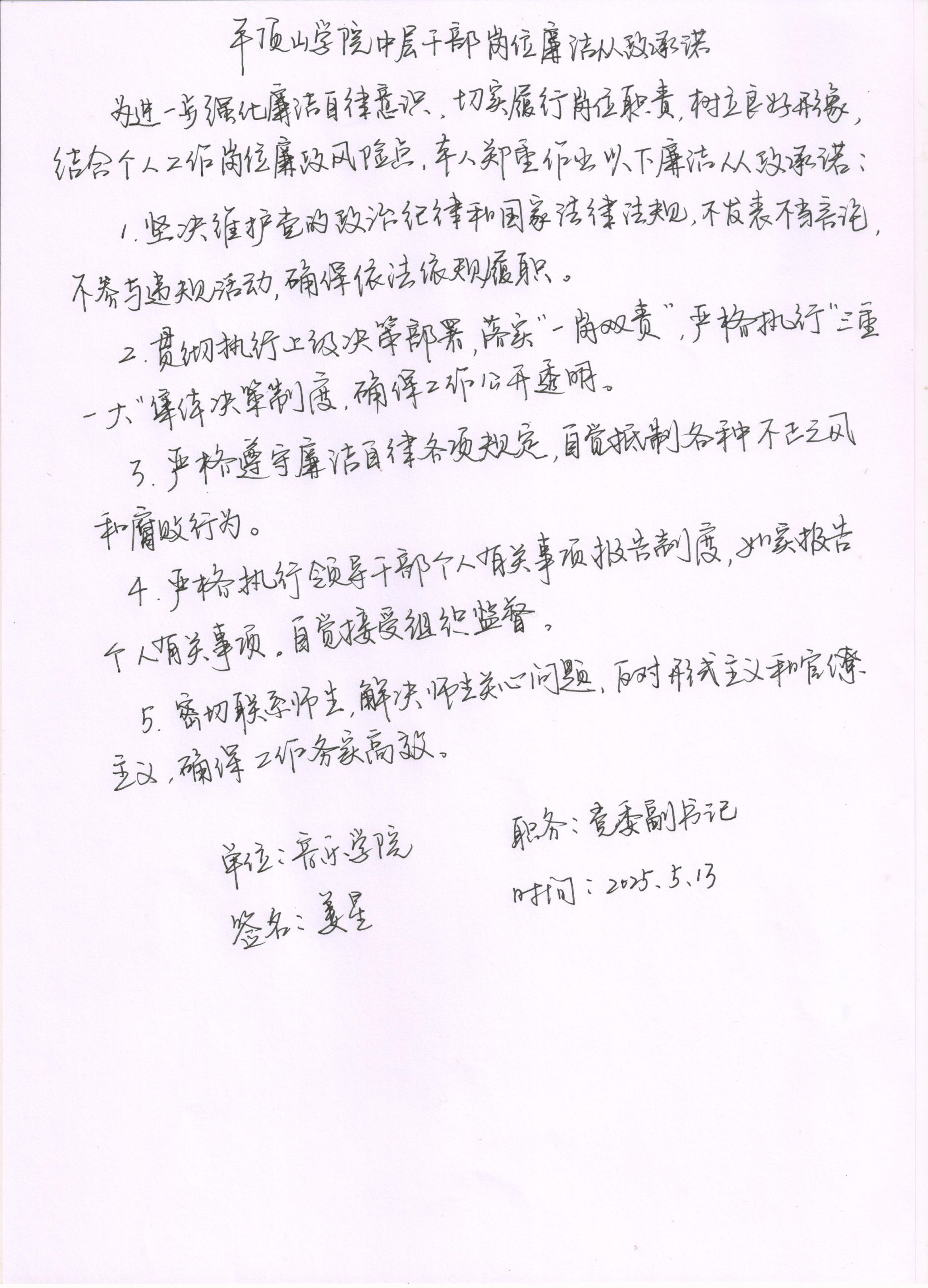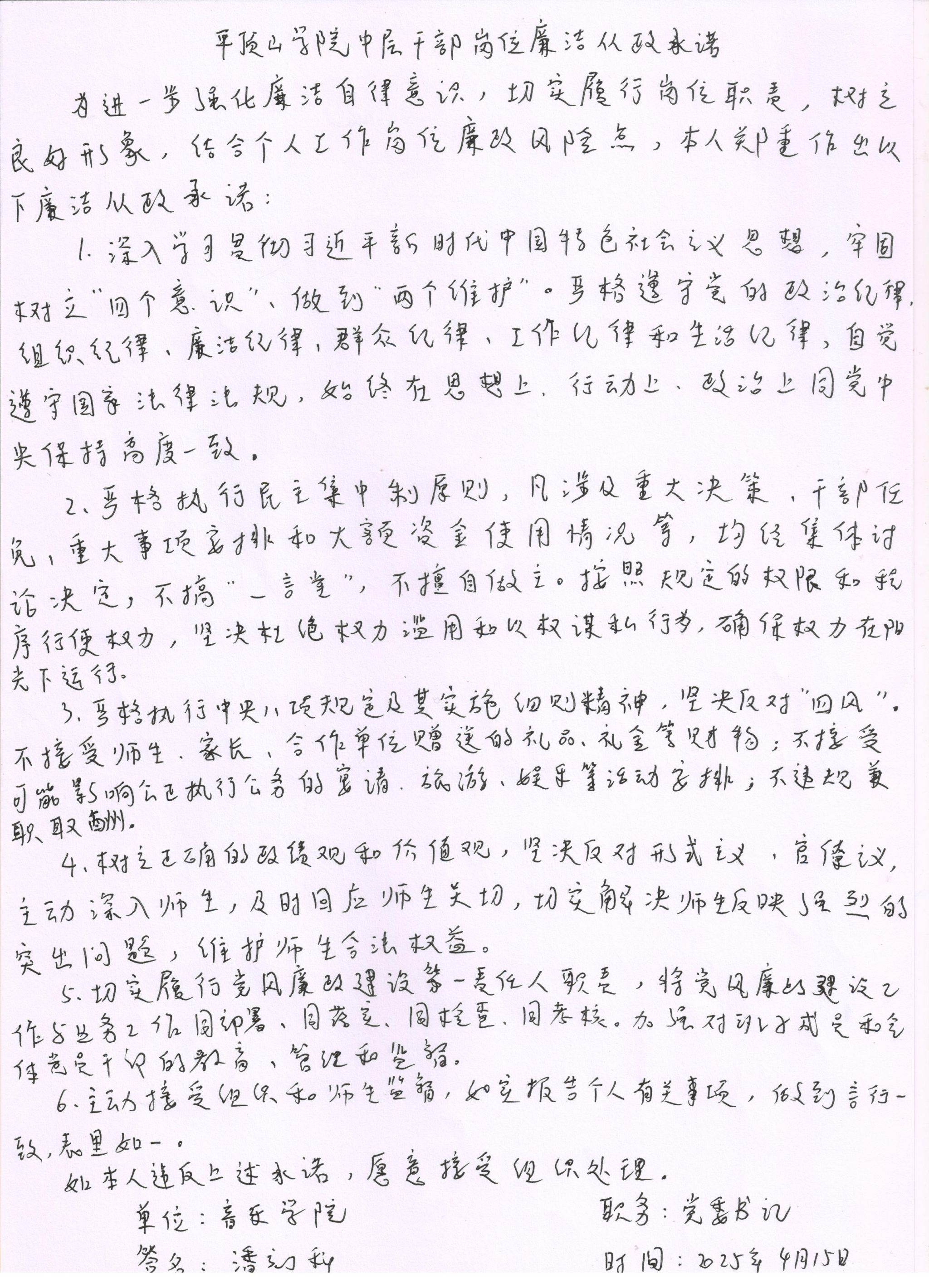 2025年太阳成集团tyc122cc中层干部岗位廉洁从政承诺书