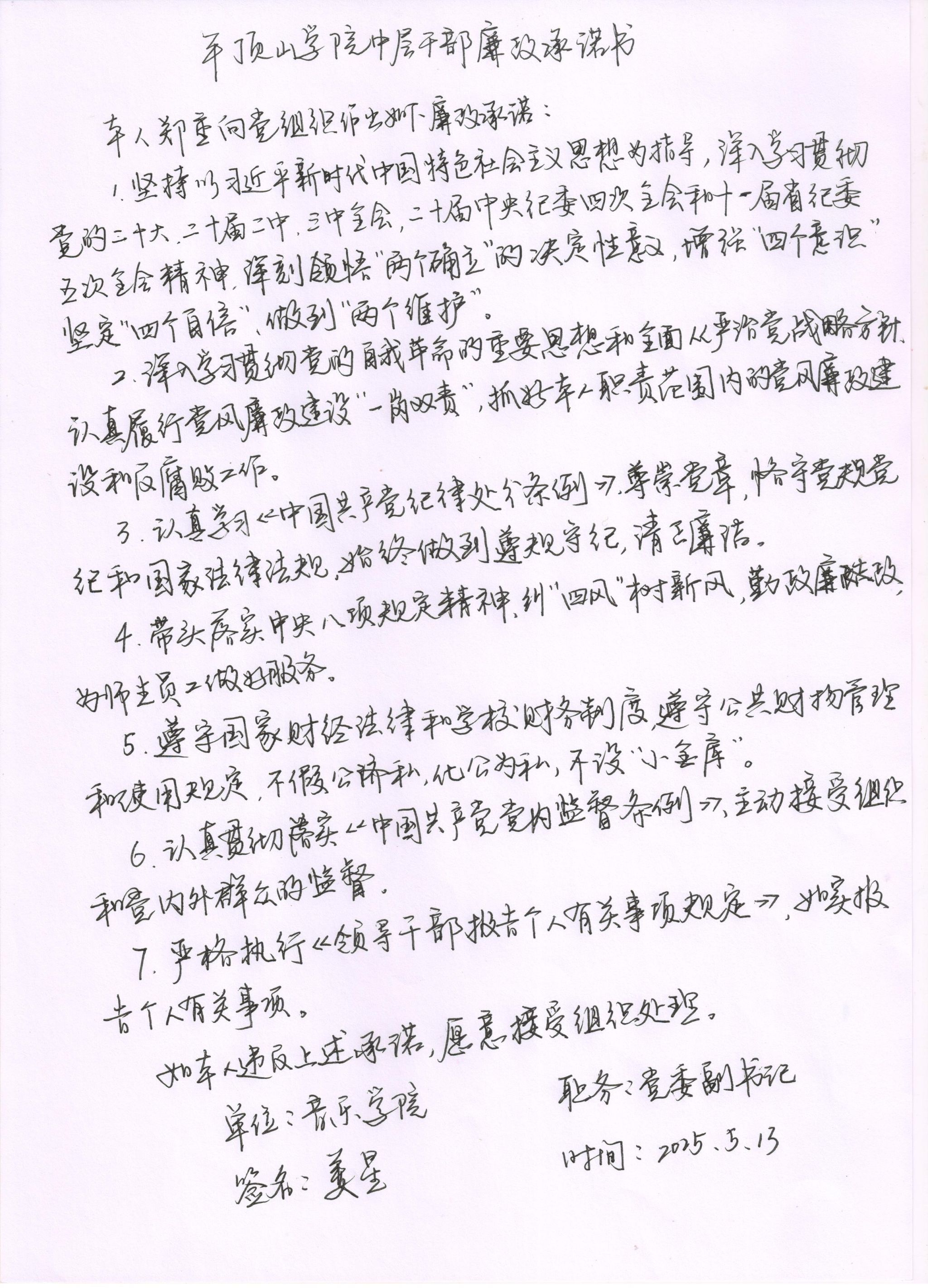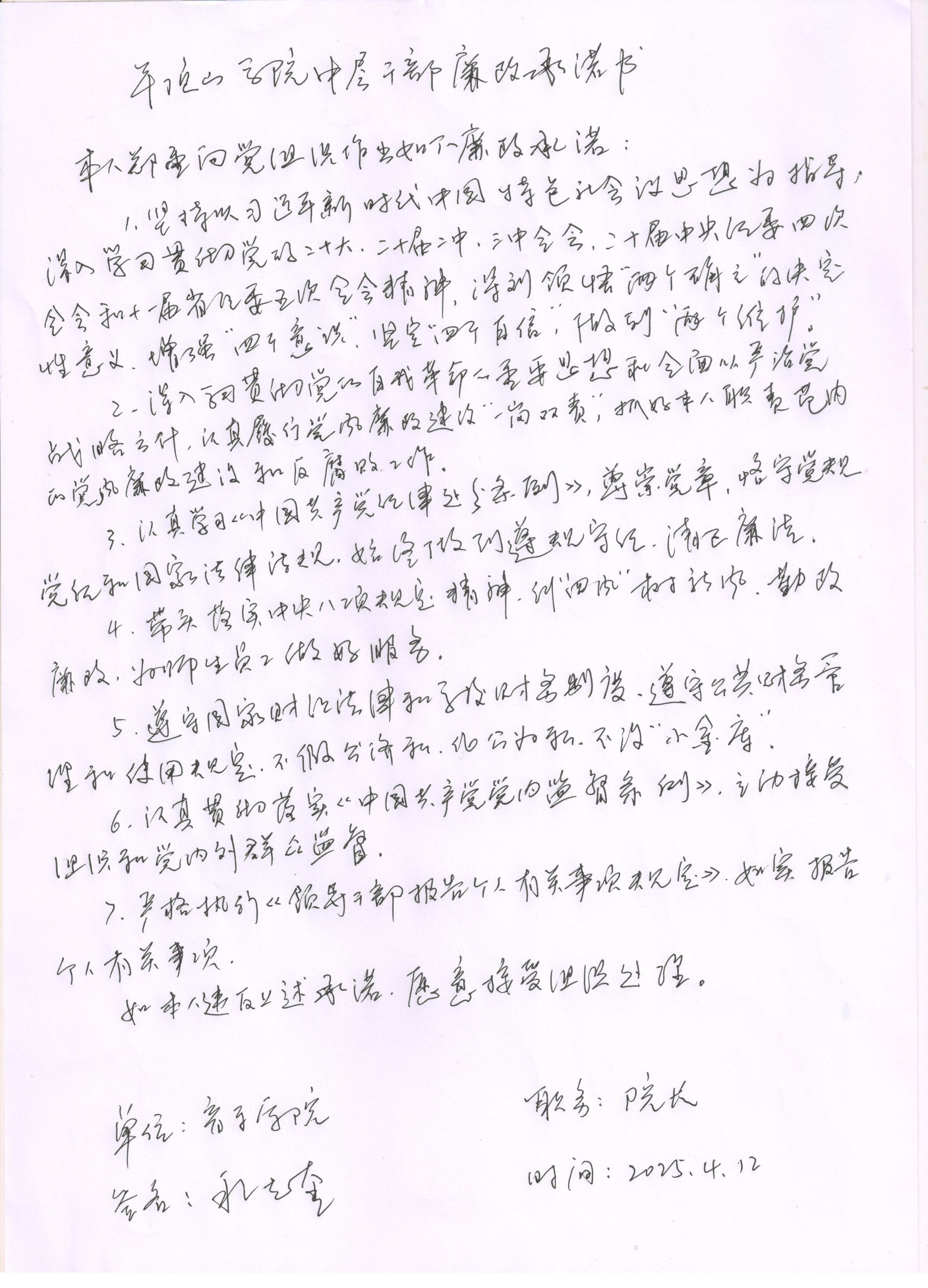 2025年太阳成集团tyc122cc中层干部廉政承诺书