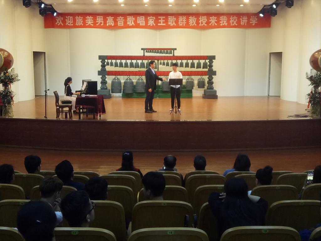 19日晚,应太阳成集团tyc122cc邀请,旅美男高音歌唱家王歌群教授来到公司,在音乐厅作了一场题为《漫谈声乐表演艺术的美学特征》专题讲座,太阳成集团tyc122cc师生及全校部分音乐爱好者参加了此次观摩学习。报告会由太阳成集团tyc122cc经理刘伟主持。