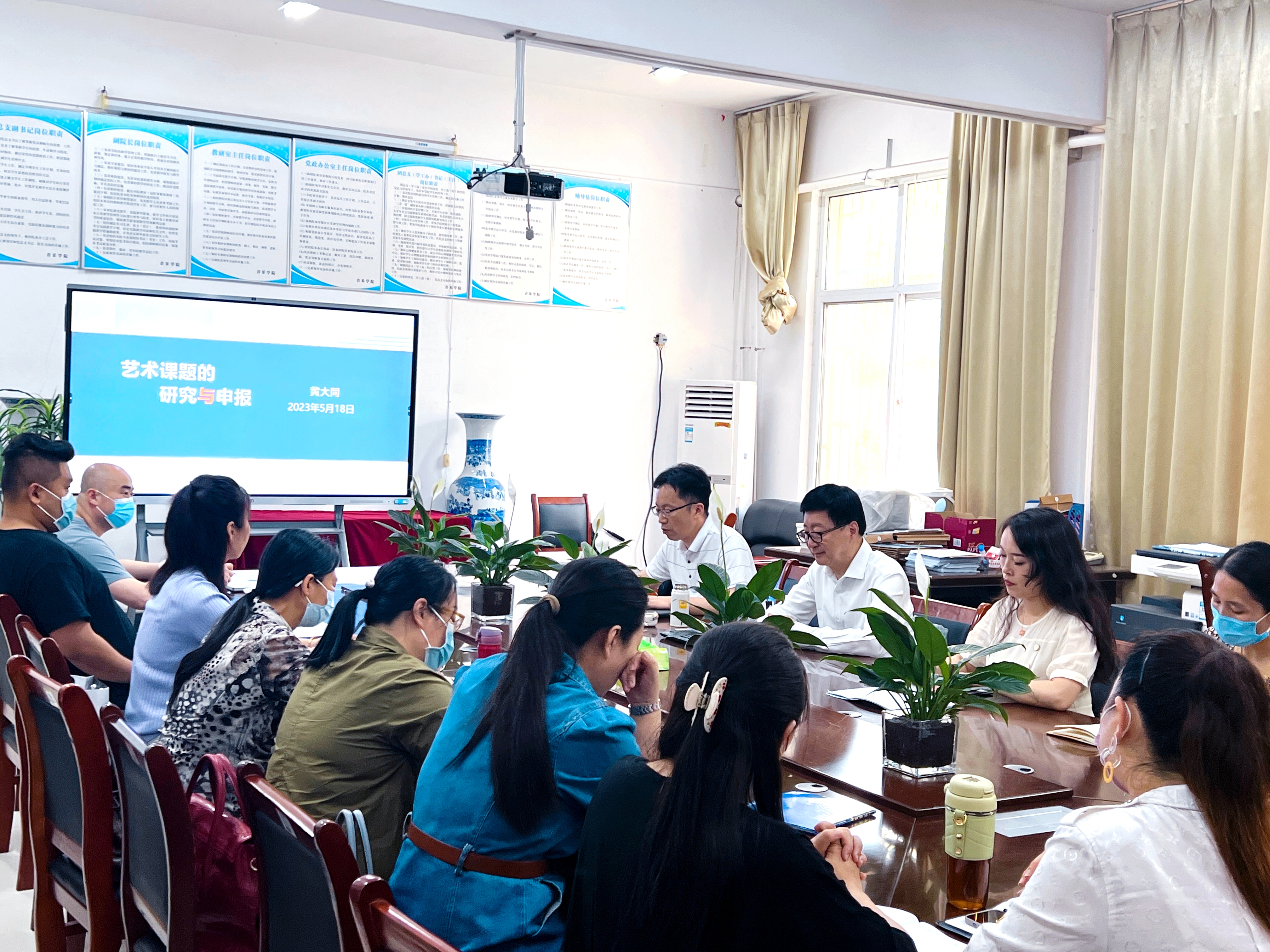 5月18日下午,应太阳成集团tyc122cc邀请,温州大学特聘教授黄大同在艺术楼105会议室作了一场《艺术课题的研究与申报》的专题讲座,太阳成集团tyc122cc全体教师参加了此次讲座。