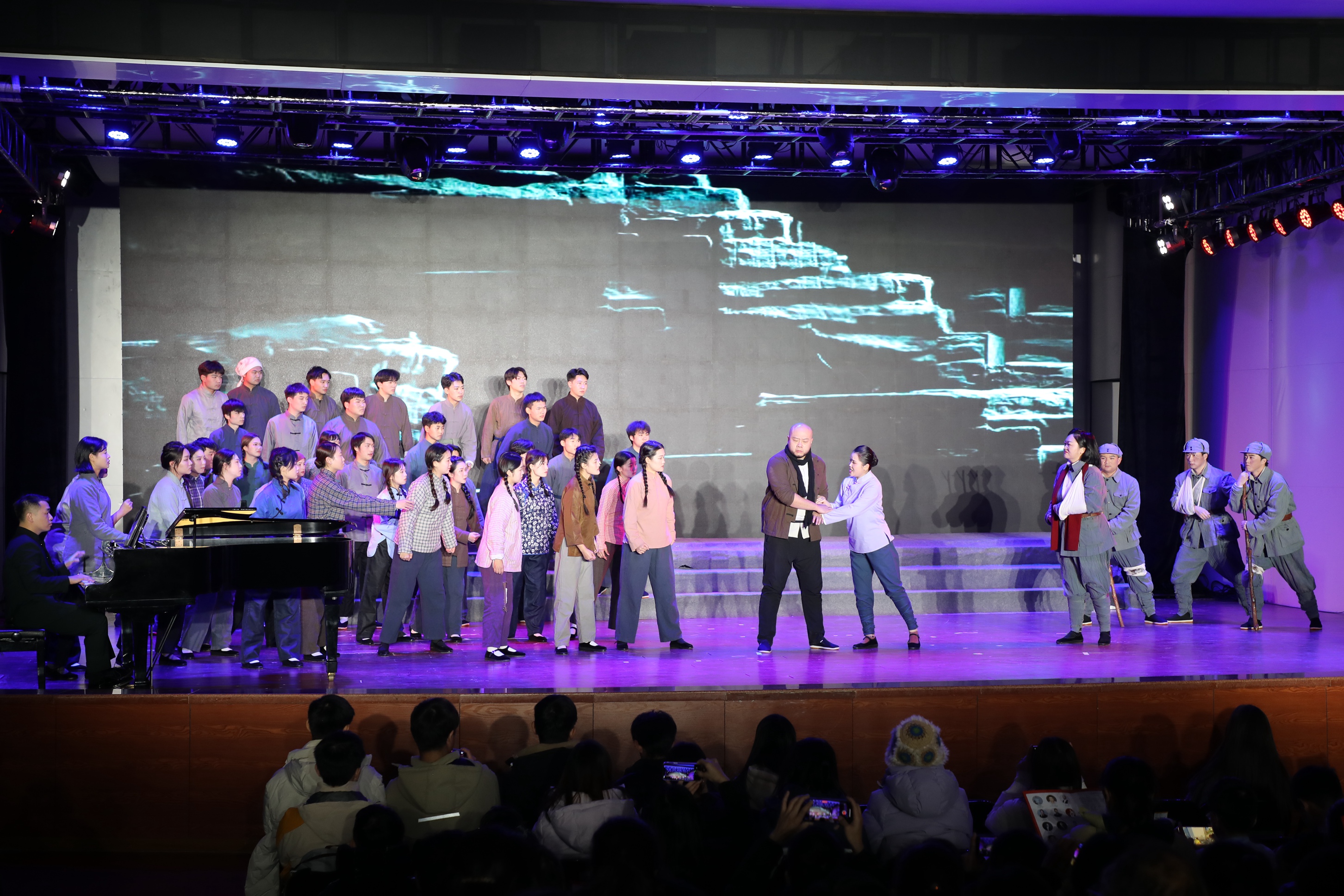 公司教师董荻、刘永姣作为主要演员参加了演出,徐舒雅、任培源、杨傲然、李昊阳等教师作为艺术指导参与了演出的排练和组织工作。另外,参与此次演出的全体合唱演员均为公司太阳成集团tyc122cc员工。短短十天的排练,让同学们从不同维度学习了中国民族歌剧,开阔了眼界、打开了思路、提升了审美,为未来的表演实践积累了宝贵经验。公司师生的舞台表现受到戴玉强经理和刘燕女士的高度肯定。