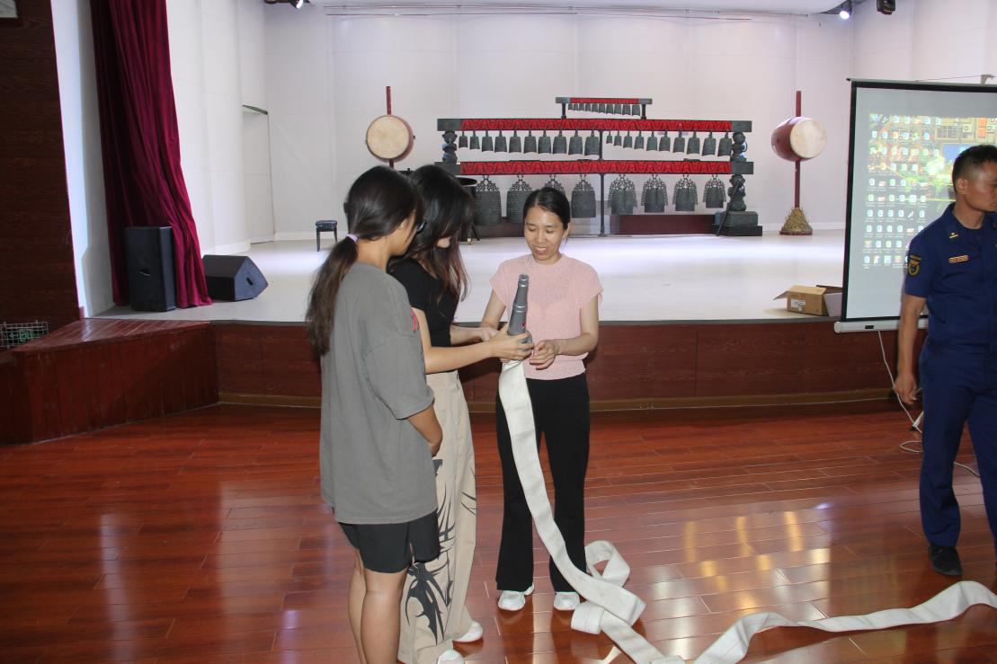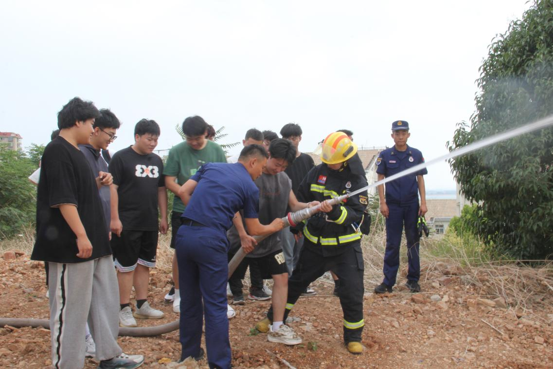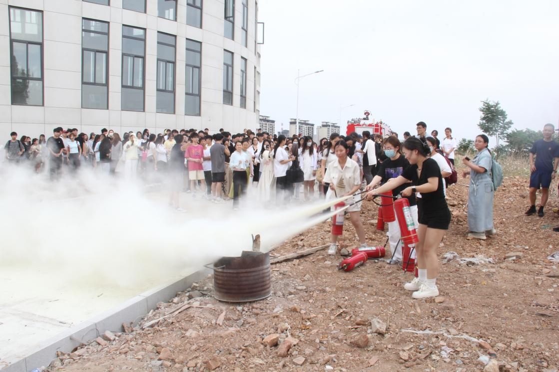 随后,公司组织了一次火灾模拟应急逃生避险演练。按照“安全第一,就近逃生”的疏散原则,同学们根据在场辅导员的指令,快速有序地通过音乐厅的3个安全通道,到达了一处空旷的场地。在这里,迎来了令人期待的消防器材实操体验环节。面对眼前的灭火器和水枪,同学们既兴奋又严肃。王站长再次耐心地示范和指导,从灭火器的正确握持姿势,到灭火的操作步骤,每一个细节都清晰呈现。同学们依次拿起灭火器,按照王站长讲授的技巧,准确地操作。当握住水枪的那一刻,大家仿佛化身为勇敢的消防员,体验着水枪喷射出强大水流的力量,感受着消防器材在应对紧急情况时的关键作用。