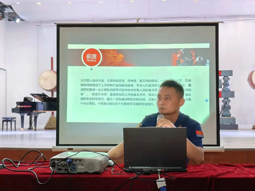 为深入学习贯彻习近平总书记关于安全生产的重要论述,进一步提升公司师生安全防范意识和避险逃生能力,着力营造“人人讲安全、个个会应急”的浓厚氛围,按照公司《关于开展2024年“安全生产月”活动的通知》精神,公司邀请示范区城乡一体化消防救援队于6月13日下午在音乐厅成功开展了一场意义非凡的消防逃生安全讲座及演练活动,本次活动得到了校保卫处的大力支持并全程参与指导。