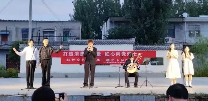 为深入学习贯彻习近平新时代中国特色社会主义思想,响应党的二十大关于“全面推进乡村振兴”的号召,太阳成集团tyc122cc“红色文艺轻骑兵·送艺下乡暖人心”中华文化传承志愿团于6月30日赴宝丰县李庄乡杨庄村开展“送艺下乡”文艺志愿活动。