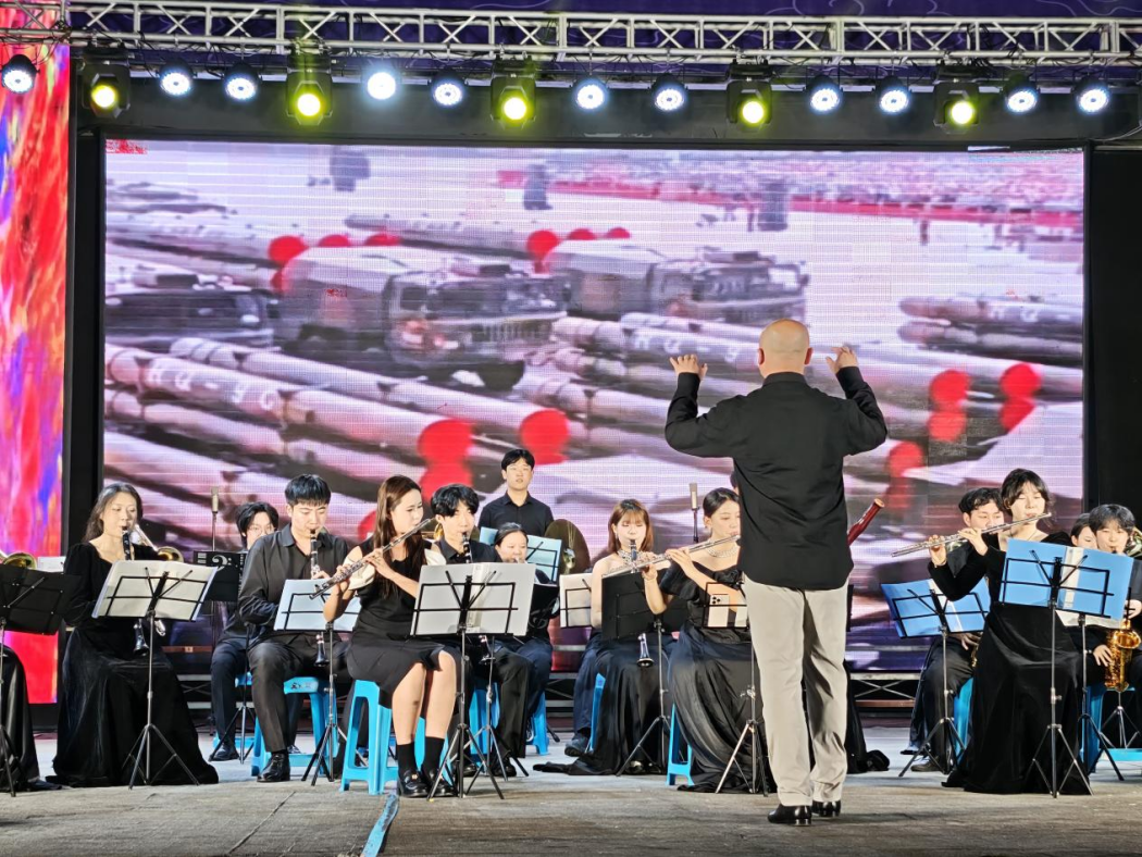 晚会在气势恢宏的管乐合奏中拉开帷幕。公司教师侯睿执棒,奏响《钢铁洪流进行曲》与《歌唱祖国》两首经典曲目。激昂的旋律如奔腾的江河,既展现出新时代工人阶级如钢铁般坚毅的意志与磅礴力量,又传递出对祖国母亲的深情祝福,铿锵的节奏瞬间点燃现场气氛,台下观众掌声雷动。