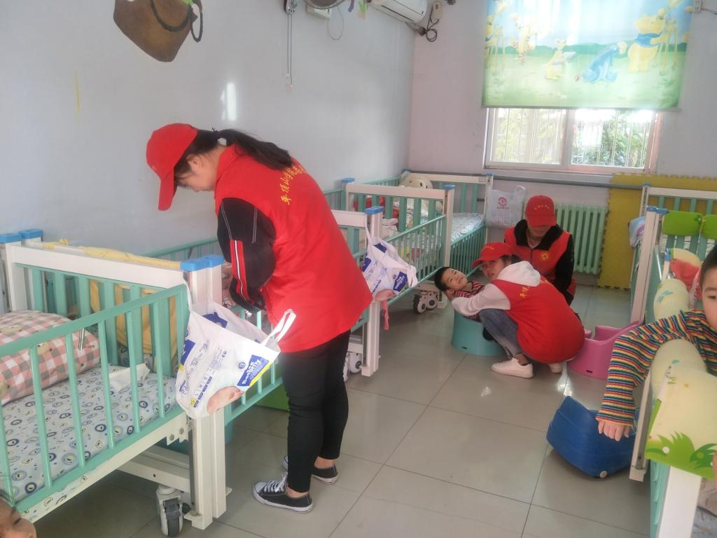 志愿者们有序的进入福利院,有的志愿者热心地去打扫卫生,给福利院的孩子们创造一个干净的生活环境;也有的积极主动的与小朋友交流玩耍,带领他们唱歌,跳舞,做游戏,给她们讲故事,看他们脸上充满笑容,志愿者心里也是满满的幸福。志愿者们时刻注意自己的言行举止,希望自己能给小朋友们树立一个好榜样。