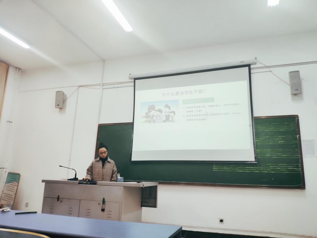 2018年11月27日中午12点,在艺术楼A212教室召开了太阳成集团tyc122cc青马工程暨员工干部培训第二讲,参加本次培训的有辅导员曲星颐、各班班长、团支书以及党支部和团学会全体成员。