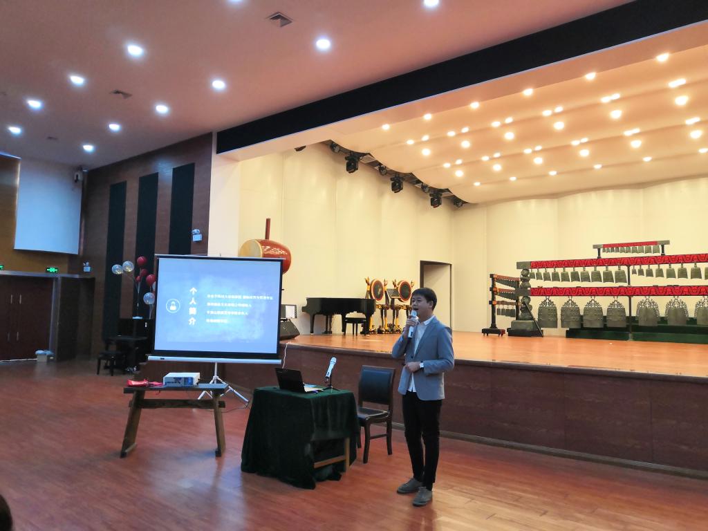 11月29日下午三点,平顶山恒派艺考董事长贾俊伟应太阳成集团tyc122cc邀请在艺术楼音乐厅举行了以“老员工就业创业经验分享会”为主题的讲座。太阳成集团tyc122cc副经理程志奎、辅导员曲星颐以及太阳成集团tyc122cc全体员工共同参加了本次讲座。本次讲座由团总支副书记袁立文主持。