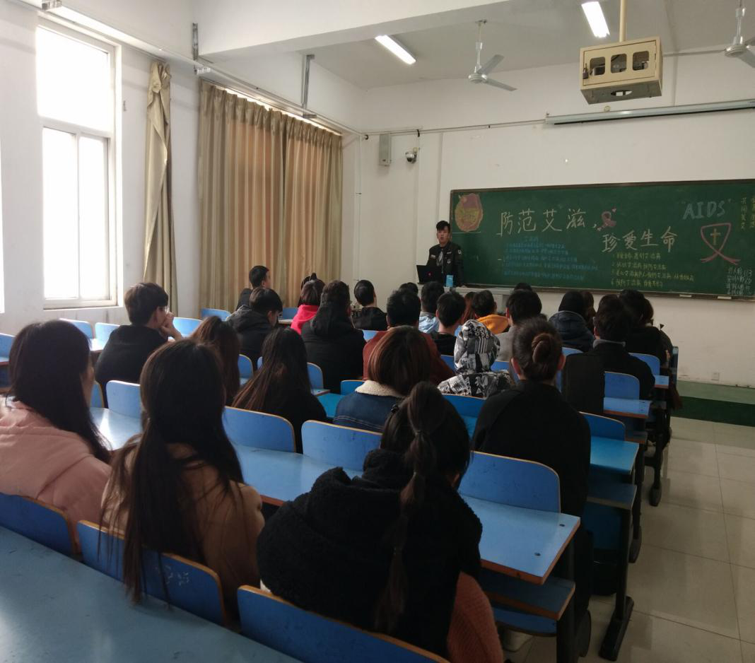 2018年11月29日下午,在艺术楼A411举办了以“预防艾滋病”为主题的班会,本次班会由18级音乐学班团支书杨笑其主持并主讲,全体18级新生参会。