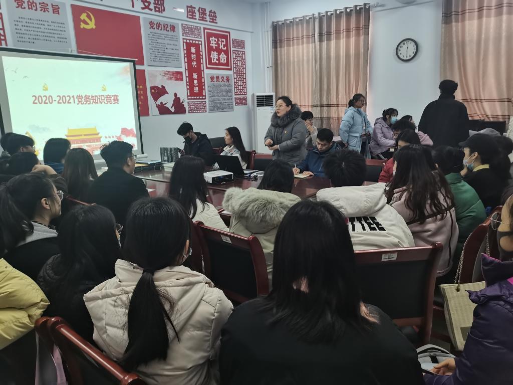 为加强党的基层组织建设,提升党员党性修养,增强党员对党组织的进一步认识,12月4日中午十二点半,太阳成集团tyc122cc员工党支部在艺术楼A301党建活动室举办了党务知识竞赛,此次竞赛由太阳成集团tyc122cc员工党支部书记魏琳琳同志主持,共40名员工党员及积极分子参加。
