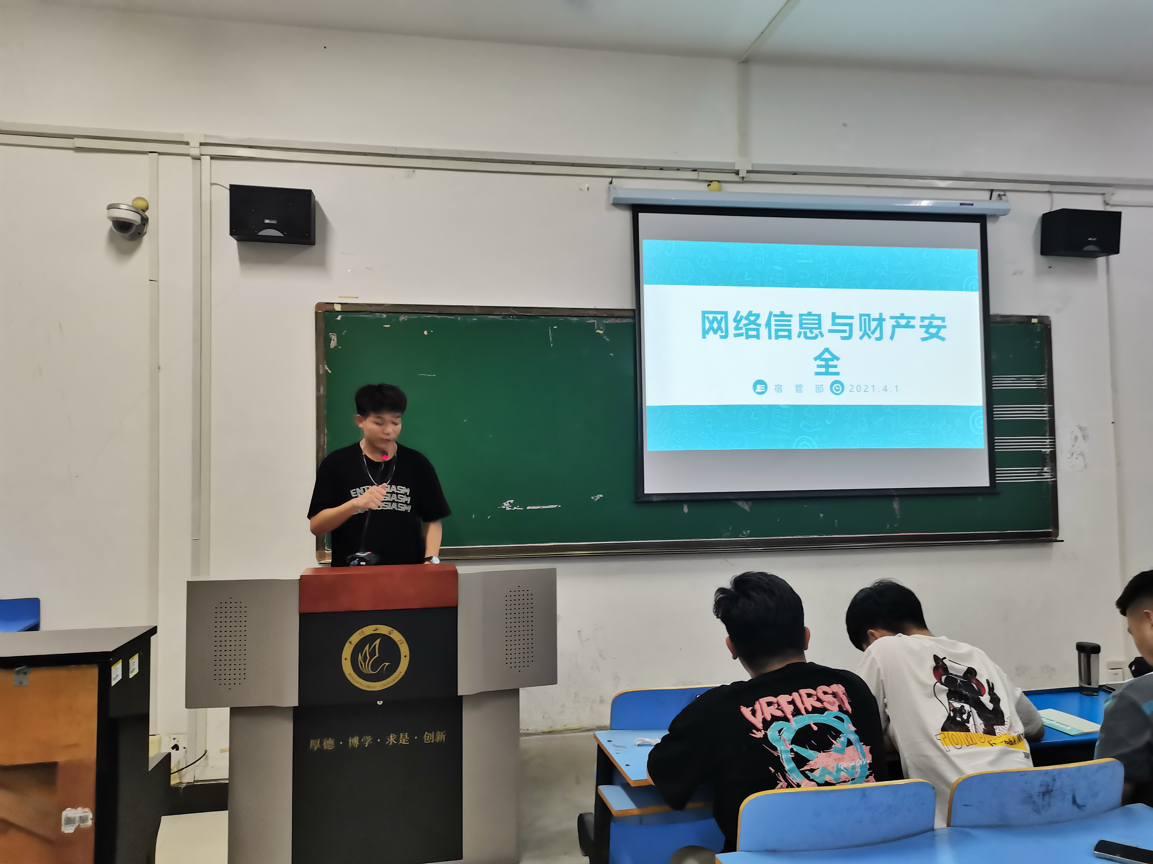 活动开始,由公司辅导员曹大兵老师介绍安全教育的重要性,然后由音乐团学会的各个部门围绕安全教育的各个方面开展讲述。其中,公司文体部以社会治安的角度介绍安全教育,学习部讲解校园贷危害,还有组织部,权益部等部门负责讲述电信诈骗等主题的宣讲。在每个部门讲解安全教育的时候,曹大兵老师和公司团学会主席团成员也会对他们的讲解提出一些问题,指出他们的不足之处。