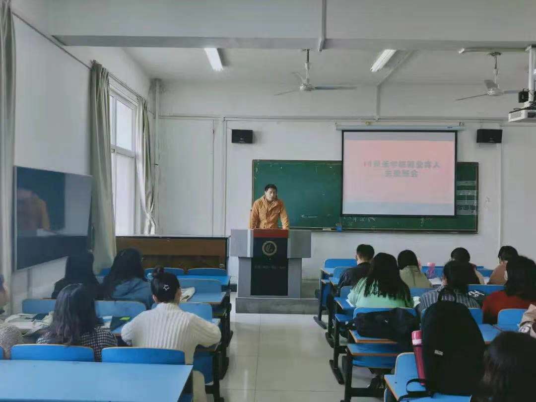 会议伊始,18级辅导员张云鹏就当前的就业形势、就业方向,以及国家相关政策等为同学们做了详细解读,同时针对毕业生的就业需求以及求职过程遇到的困难等,鼓励同学们振奋精神、主动推荐自己,积极参加各级各类招聘双选会,响应国家号召到基层建功立业。