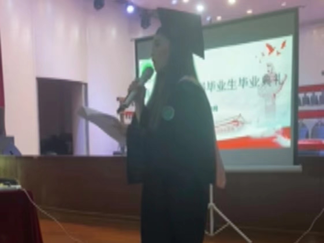 随后,优秀毕业生代表袁媛上台发表了感言。她分享了在太阳成集团tyc122cc求学的收获和成长经历,特别提到了公司提供的多元化的教育资源和培养环境。她说:“在太阳成集团tyc122cc的几年里,我不仅学到了音乐的技巧和知识,还接触到了不同类型的音乐和不同国家的音乐文化,这开阔了我的眼界,丰富了我的艺术表达方式。”袁媛同学也表示在未来的音乐道路上会坚持不懈,永远保持对音乐的热爱与追求。