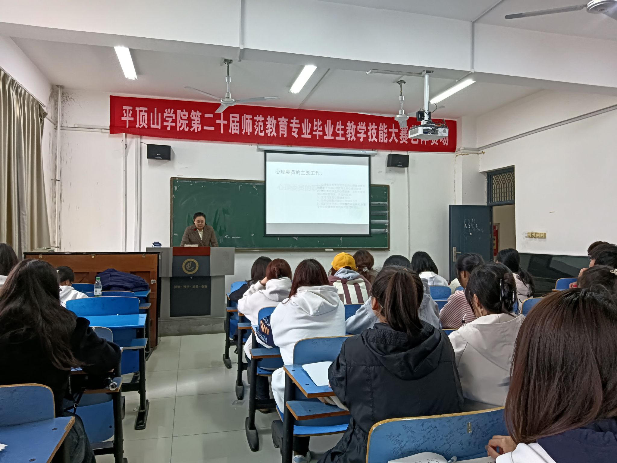 培训伊始,魏老师强调了心理信息员在校园心理健康防护网中的关键作用,鼓励大家积极履行职责,为同学们营造健康积极的班级心理氛围。本次培训围绕常见心理问题的识别与应对、沟通技巧、危机干预基础等核心内容展开。通过理论讲解、案例分析与小组讨论相结合的形式,帮助心理委员们深化对心理健康问题的理解,掌握实用的心理助人技能。