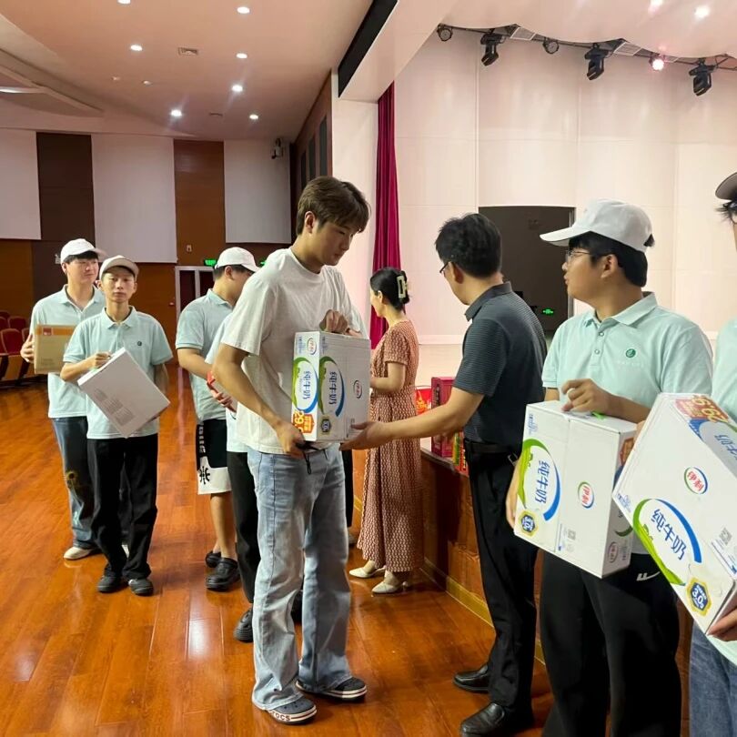 公司领导与志愿者们亲切交流,详细了解排练进度和生活保障情况,并送上牛奶、面包等慰问物资。程志奎叮嘱大家:“近期持续高温,大家要科学安排作息,做好防暑降温,以健康体魄保障实践任务高质量完成。”公司的关怀让大家倍感温暖,将以更高热情投入后续工作。