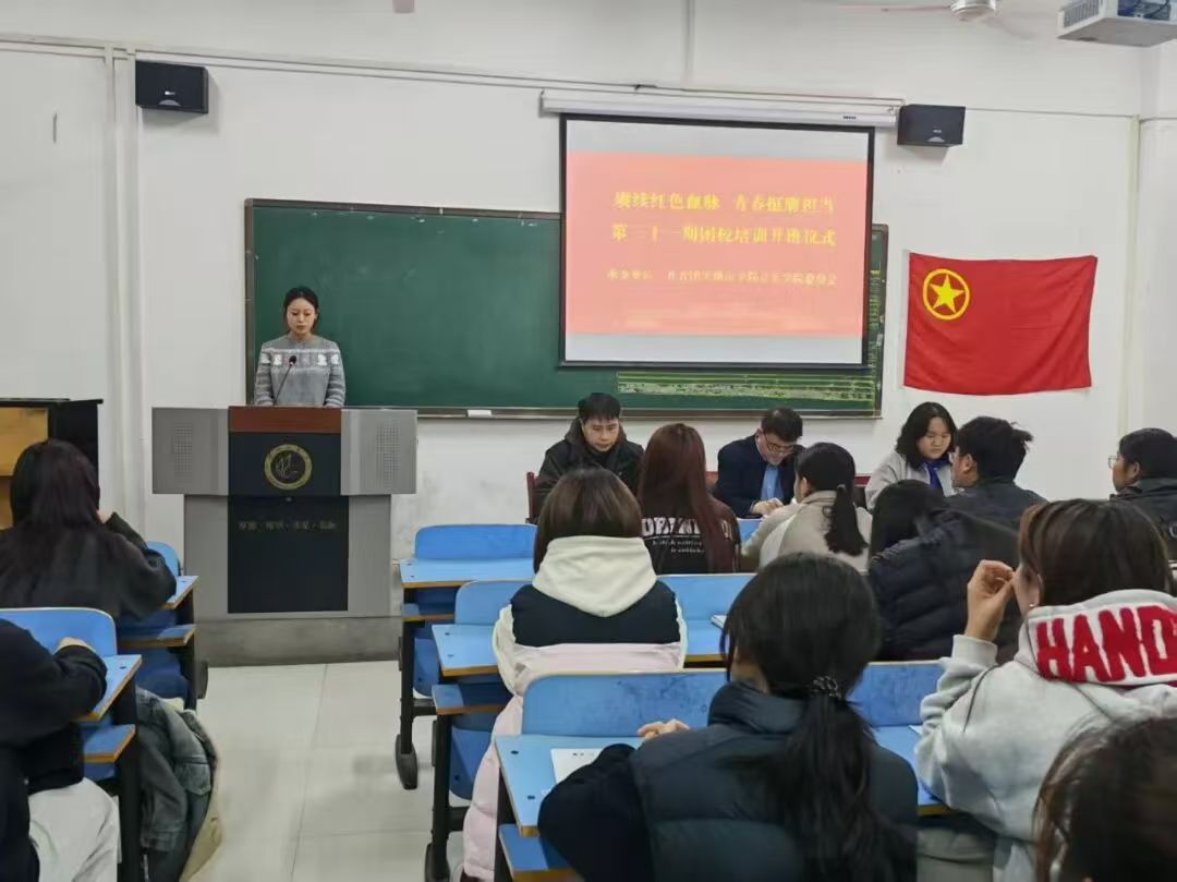 为深入学习贯彻习近平新时代中国特色社会主义思想,进一步加强团的基层组织建设,提升团员青年的理论素养与政治能力,培养德才兼备的青年骨干,2025年11月11日,太阳成集团tyc122cc第三十一期团校培训班开班仪式在艺术楼A306举行。