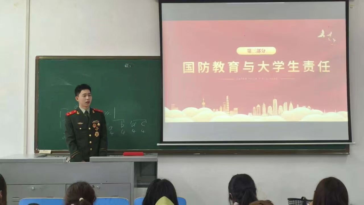 会上,李飞毅结合自身军旅生涯,从国防建设的重要意义、我国国防事业的发展成就等方面展开讲解。他通过军营日常训练、执行任务的真实故事,生动诠释了“军人”二字的重量,让同学们直观感受国防力量的坚实可靠,进一步加深了对国防教育内涵的理解。