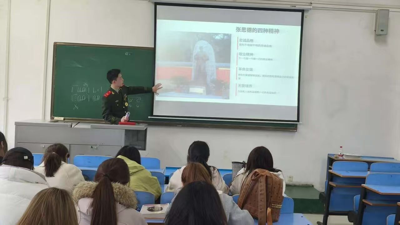 随后,李飞毅带领同学们重温张思德同志的英勇事迹。他详细讲述了张思德同志在革命战争年代始终牢记为人民服务的宗旨,不畏艰难、无私奉献,最终在炭窑崩塌时为保护战友安全而牺牲的感人事迹。他强调,张思德同志的精神跨越时空、历久弥新,是新时代青年传承红色基因、践行初心使命的精神标杆。