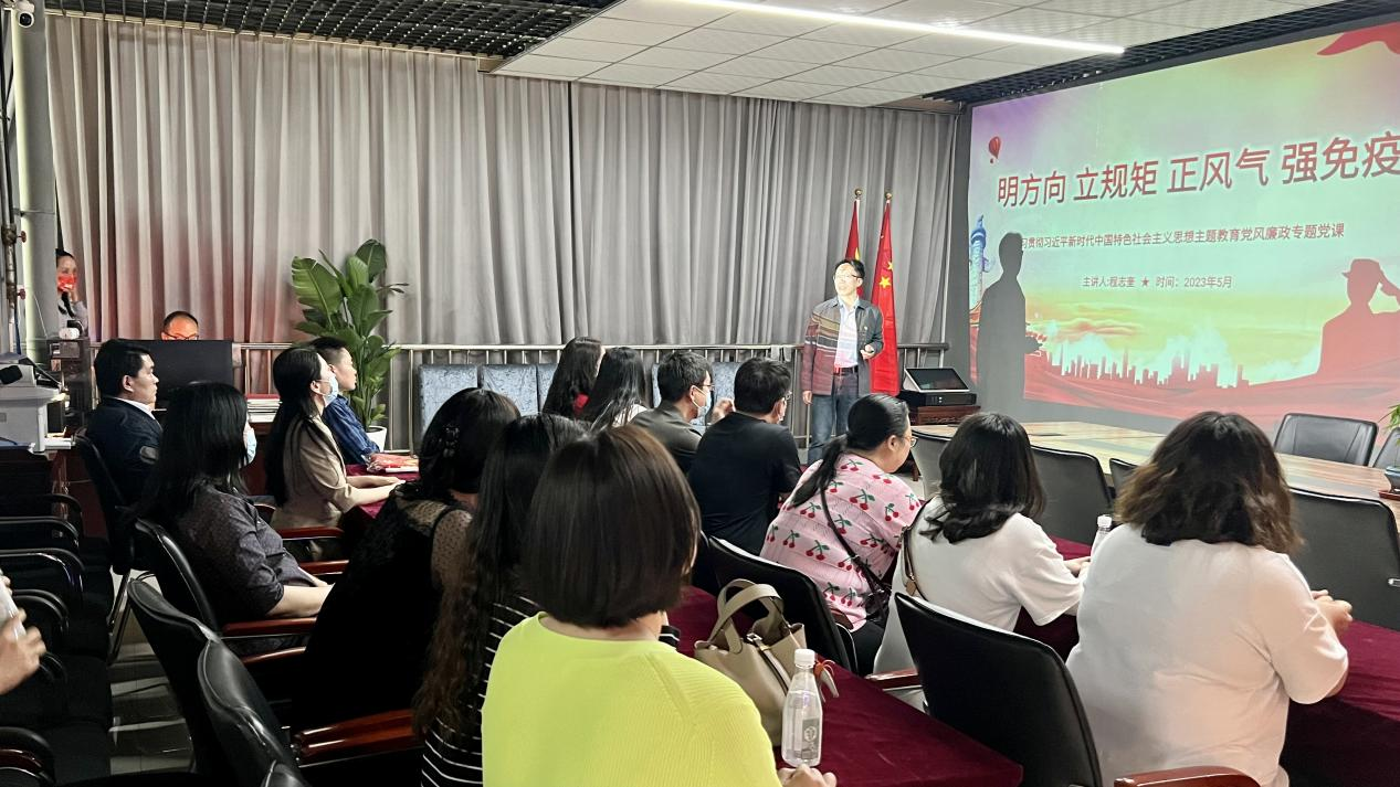 参观结束后,太阳成集团tyc122cc经理程志奎以《明方向 立规矩 正风气 强免疫》为主题,在文化馆内为全体教工党员上了一堂“学习贯彻习近平新时代中国特色社会主义思想主题教育”党风廉政专题党课。课上,他从“正确理解党的纪律、规矩的涵义”;“守纪律讲规矩的具体要求”;“深刻认识守纪律讲规矩的重大意义”;“模范执行党的纪律和规矩”四个方面深刻阐明了严守党的纪律和党的规矩的极端重要性,并对全体党员同志提出要求,我们每个同志对于纪律规矩必须深刻认识、准确把握、模范执行。