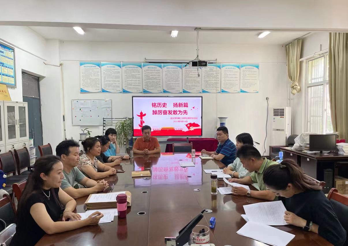 2023年9月14日下午,公司教工支部在艺术楼105办公室开展9月份主题党日活动,活动由教工支部书记曾凡广主持,全体教工党员参加会议。