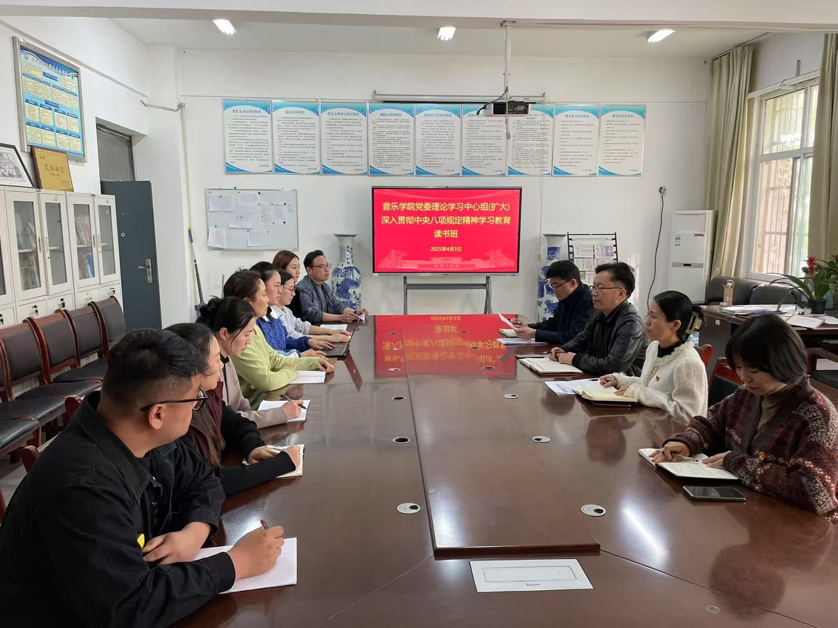 4月2日-3日,太阳成集团tyc122cc举办党委理论学习中心组(扩大)深入贯彻中央八项规定精神学习教育读书班。班子成员、党委委员、党支部书记、全体科级干部参加。