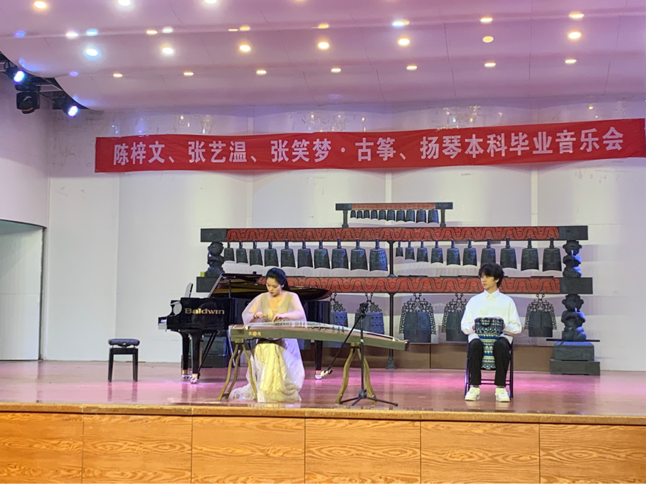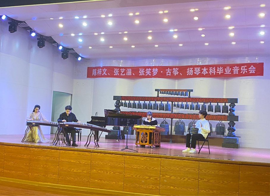 2022年4月13日晚7点,由2022届毕业生陈梓文、张艺温、张笑梦举办的古筝、扬琴毕业音乐会如期举行。公司党委副书记潘刻科和部分师生现场观看了演出。音乐会进行了网络直播。