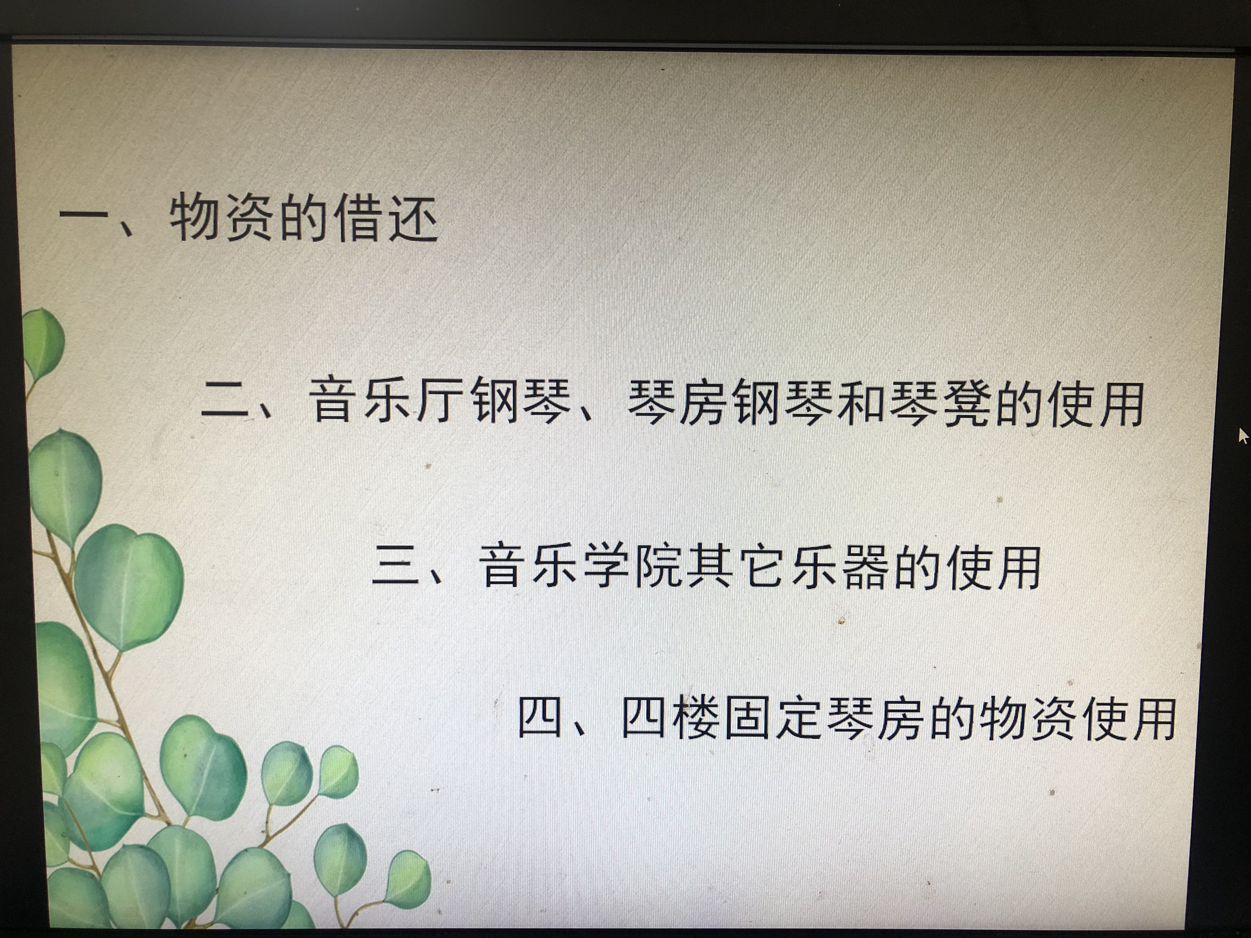 会议主要是从以下个方面对实验室的物资使用进行讲解:实验室物资的使用制度、损坏赔偿制度、物资的借还、琴房钢琴和琴凳的使用制度、乐器的使用制度、固定琴房物资的使用制度等。参加会议的员工通过此次培训,深入学习了太阳成集团tyc122cc的物资使用制度,为以后员工能够合理使用物资奠定了基础。